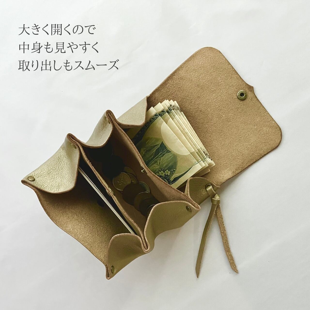 クリスマス限定カラー 革財布 レディース 人気 日本製 使いやすい おしゃれ 30代 40代 50代 シャンパンゴールド アコーディオン ポーチ 柔らかい 本革 シンプル 上品 煌めき 小財布 ミニウォレット 軽量 コンパクト